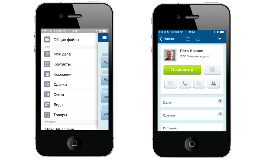 Управляйте CRM с любого мобильного устройства - планшета или смартфона. Оперативно получайте информацию и полноценно управляйте каталогом товаров, клиентской базой, своими делами и сделками. Сформируйте и выставьте мобильно счет клиенту, находясь в его офисе. Скачайте мобильную CRM для вашего «Битрикс24» в AppStore или GooglePlay и установите на смартфон или iPad.